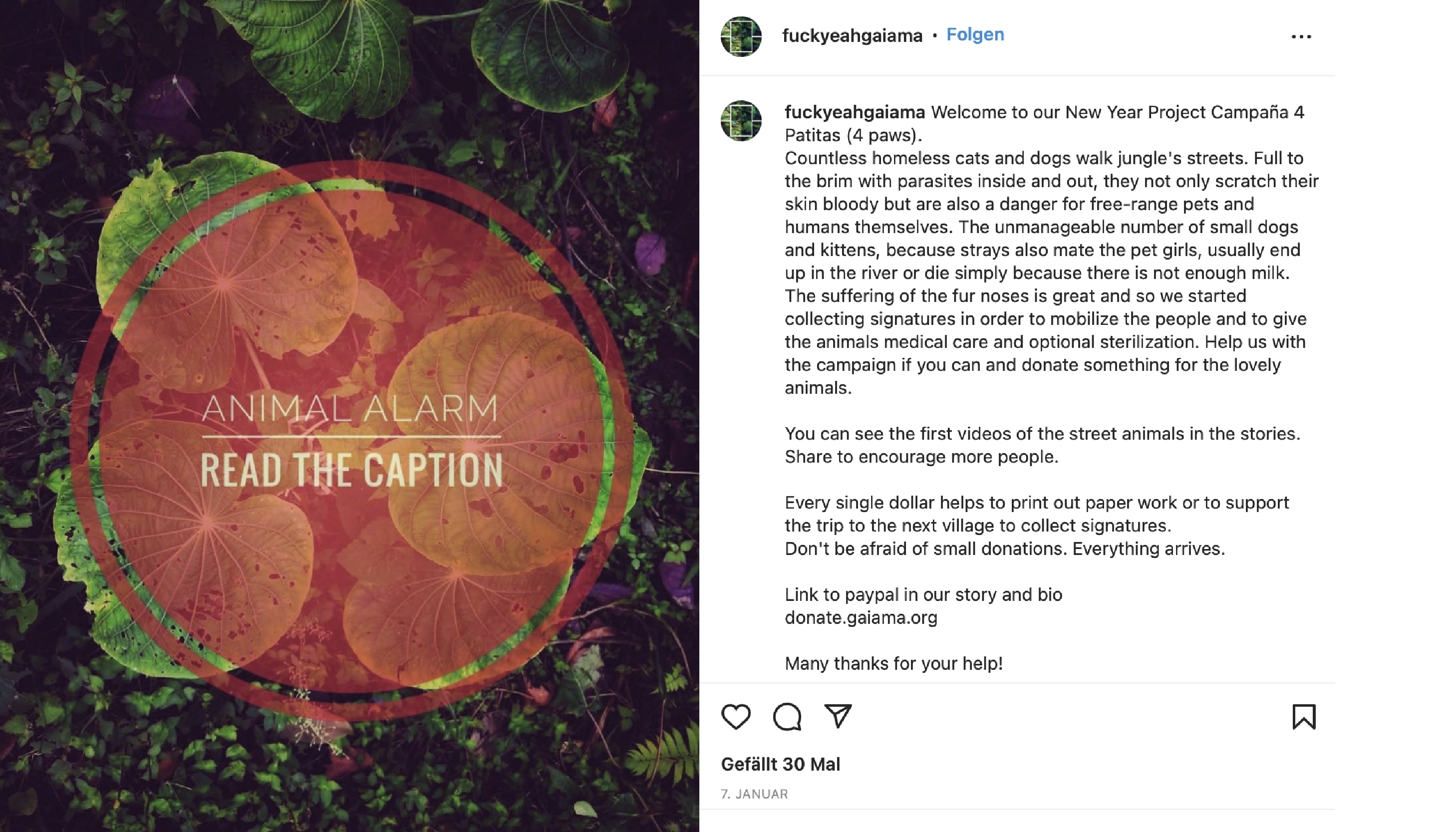 Besides striving to protect the rainforest in all its diverse natural glory, GaiAma advocates for human rights, LGBTQI+ rights, animal rights and intersectional feminism. Although this small private organization is situated in Peru, it was actually founded by 2 Berliners Can and Daniel. After falling in love with the nature of South America years ago during their round-the-world bike trip, these two knew they had to do something for the rainforest. Their work combines protection of the rainforest with the promotion of the LGBTQI+ community. You can follow GaiAma’s work on Facebook, Instagram and Twitter.