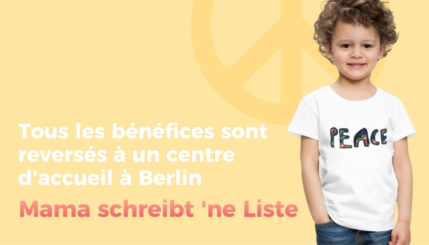 “We donate 100% of the proceeds to a reception center here in Berlin. And the best thing about it is that our opinions count on shirts. Say no to war!”