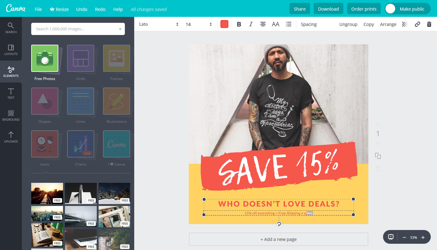 Canva erleichtert die Kreation von Grafiken und Logos um Welten – ganz egal, ob Du künstlerisches Talent besitzt oder nicht. Sowohl Anfänger als auch erfahrene Grafikdesigner nutzen die Plattform für die Kreation von schönen Social-Media-Grafiken, Promo Bannern und Logos sowie verkaufsfertigen Designs.