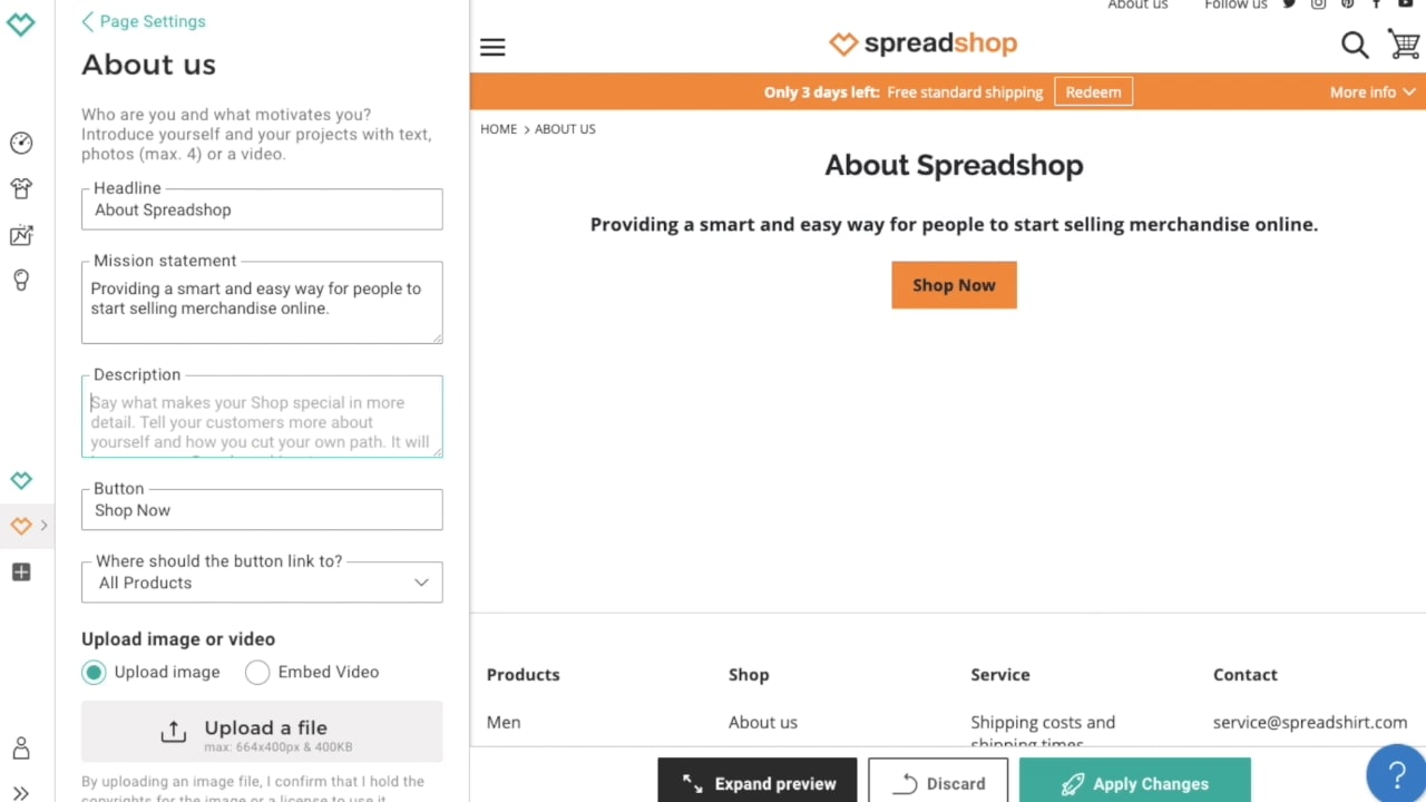 Auf der Über uns-Seite Deines Spreadshops kannst Du einen kurzen und prägnanten Text über Dich (und Dein Team) und Deinen Shop schreiben. Du könntest auch ein kurzes Video drehen oder ein schönes Foto schießen, um die Menschen hinter Deinem Shop zu zeigen oder eine kleine Geschichte zu erzählen. Ein Foto oder Video lässt sich übrigens ganz einfach auf Deiner Über uns-Seite einbinden.