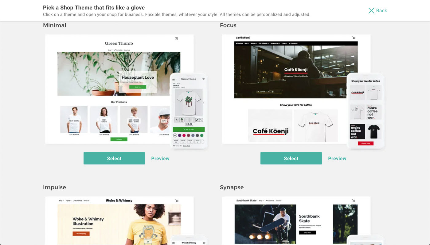 Nicht nur die Elemente Deiner Startseite sind wichtig; Dein Shop soll auch optisch den besten Eindruck hinterlassen – und zu Dir und Deiner Marke passen. Überlege Dir, wie Dein Shop aussehen soll. Lege ein einheitliches Farbschema fest, nutze passende Schriften und wähle eins von sechs Themes (unter Shop bearbeiten > Aussehen > Themes).