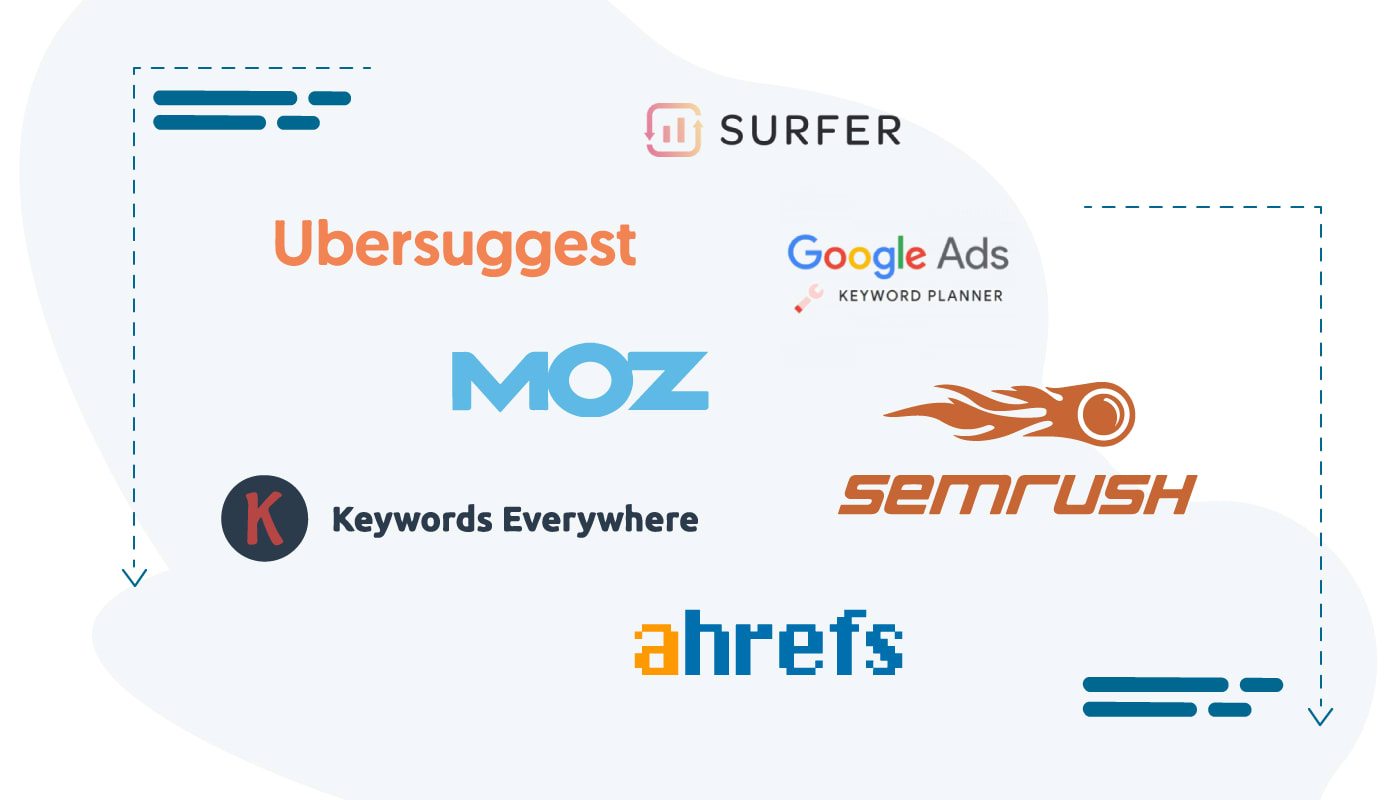 Verschiedene Keyword-Tools helfen Dir bei der Recherche nach relevanten Keywords für Deinen Shop. Hier sind ein paar kostenlose: Ubersuggest, Keyword Surfer, Keywords Everywhere, Google Keywords Planner und ein paar kostenpflichtige Beispiele: Keyword Explorer, SEM Rush, Ahrefs.