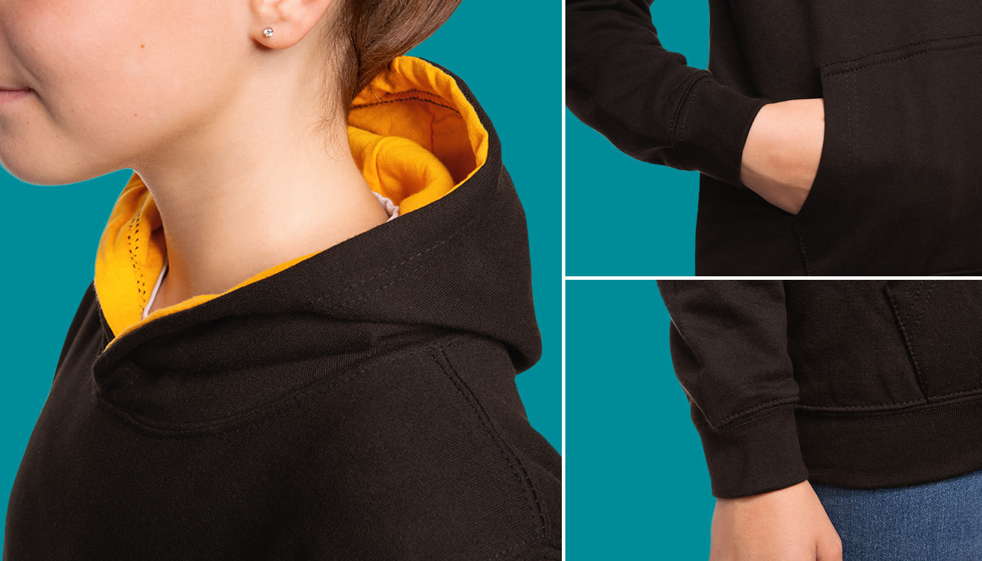 - Druckbereiche: Kinder Hoodie: 7 x 8 cm (vorn), 10 x 12 cm (hinten) // Teenager Hoodie: 7 x 8 cm (vorn), 14 x 16 cm (hinten)