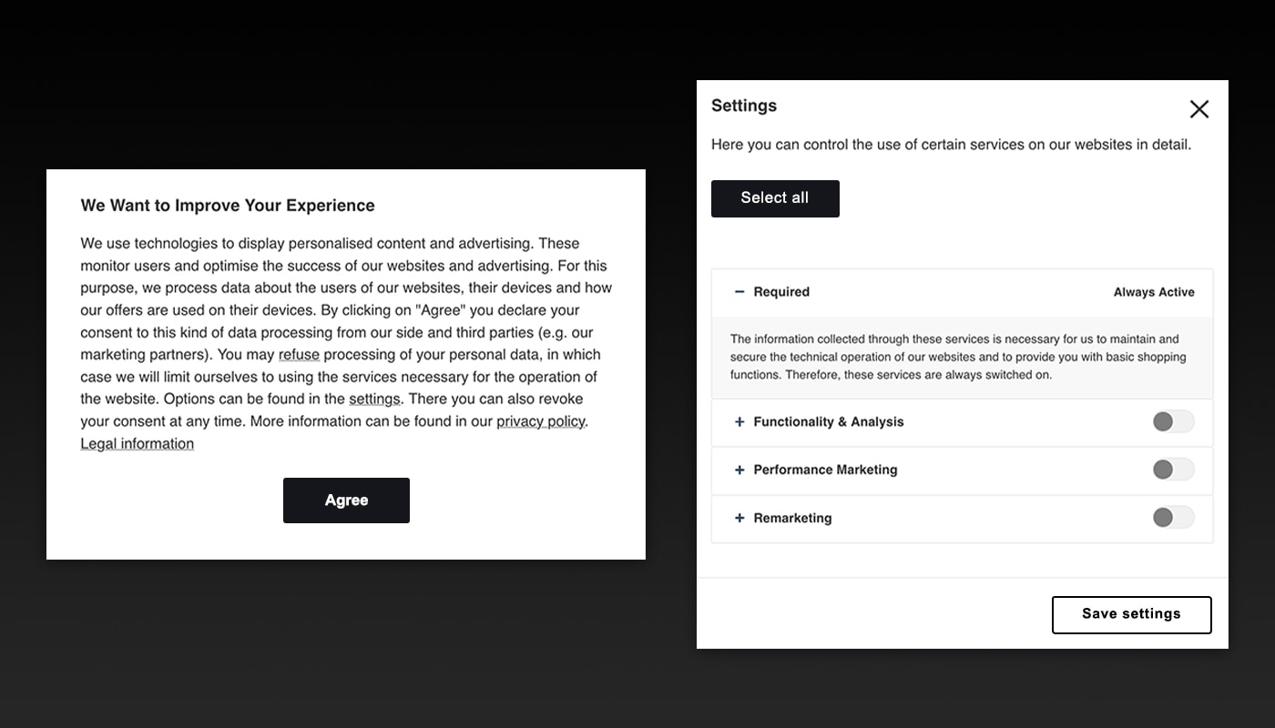 Unabhängig von den in Deinem Shop eingestellten Farben, wird der „Einverstanden“-Button immer in schwarz angezeigt, um maximale Barrierefreiheit zu gewährleisten. Durch die größere Auswahlmöglichkeit bei den Datenschutz-Optionen wird das Cookie-Banner insbesondere bei kleineren Smartphones einen Großteil des Bildschirms einnehmen. Ob und inwiefern sich hierdurch das Kaufverhalten verändert, werden wir genau beobachten.