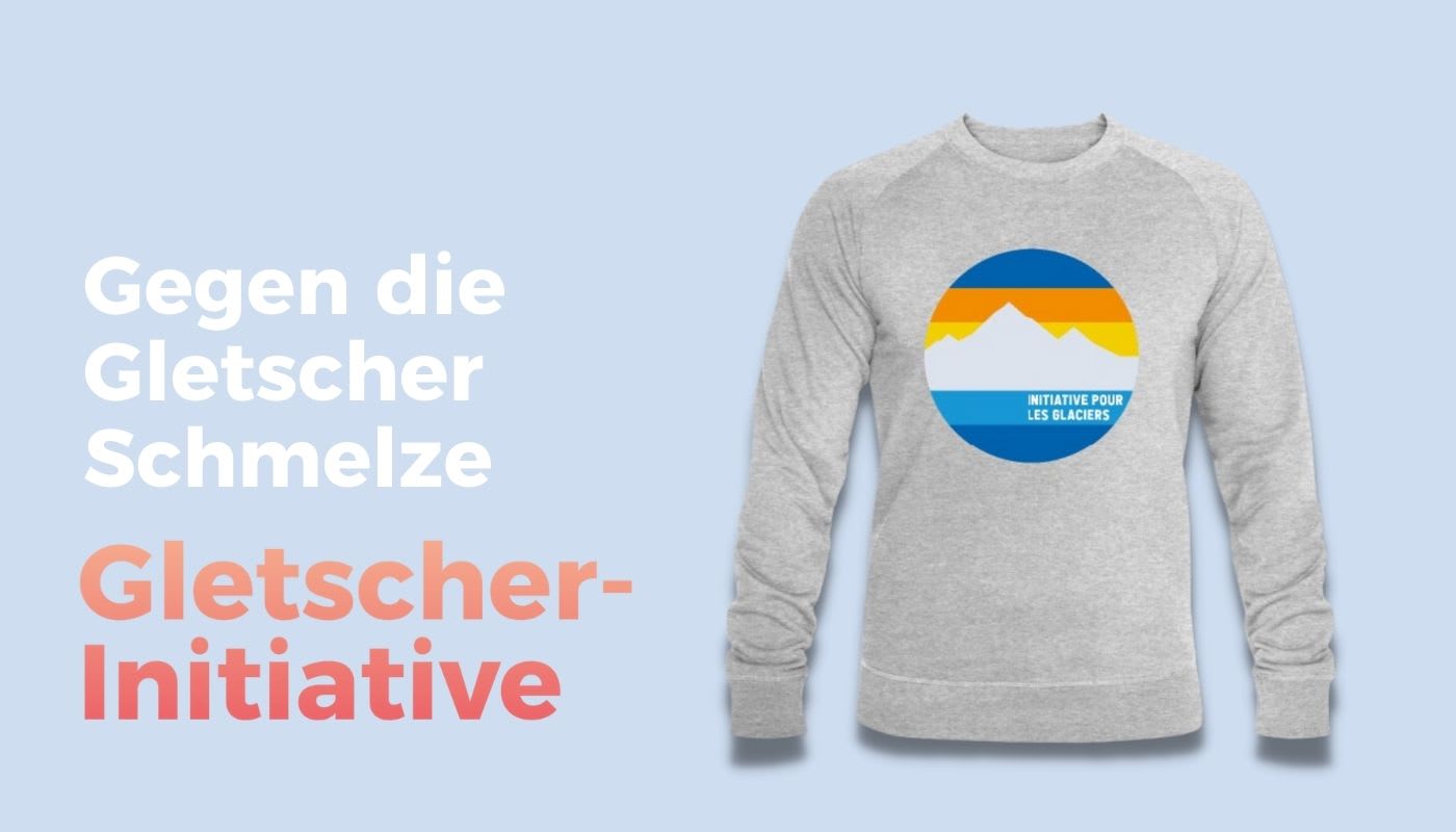 Im Spreadshop der Gletscher-Initiative finden Unterstützer*innen passenden Merch zum Projekt. Shirts, Hoodies und Beutel sind jeweils mit dem farbigen Logo der Gletscher-Initiative bedruckt, das uns noch einmal klar macht: Wenn wir jetzt nicht handeln, haben wir bald keine Gletscher mehr. Das Logo gibt’s in verschiedenen Größen und in den Landessprachen Deutsch, Französisch und Italienisch.