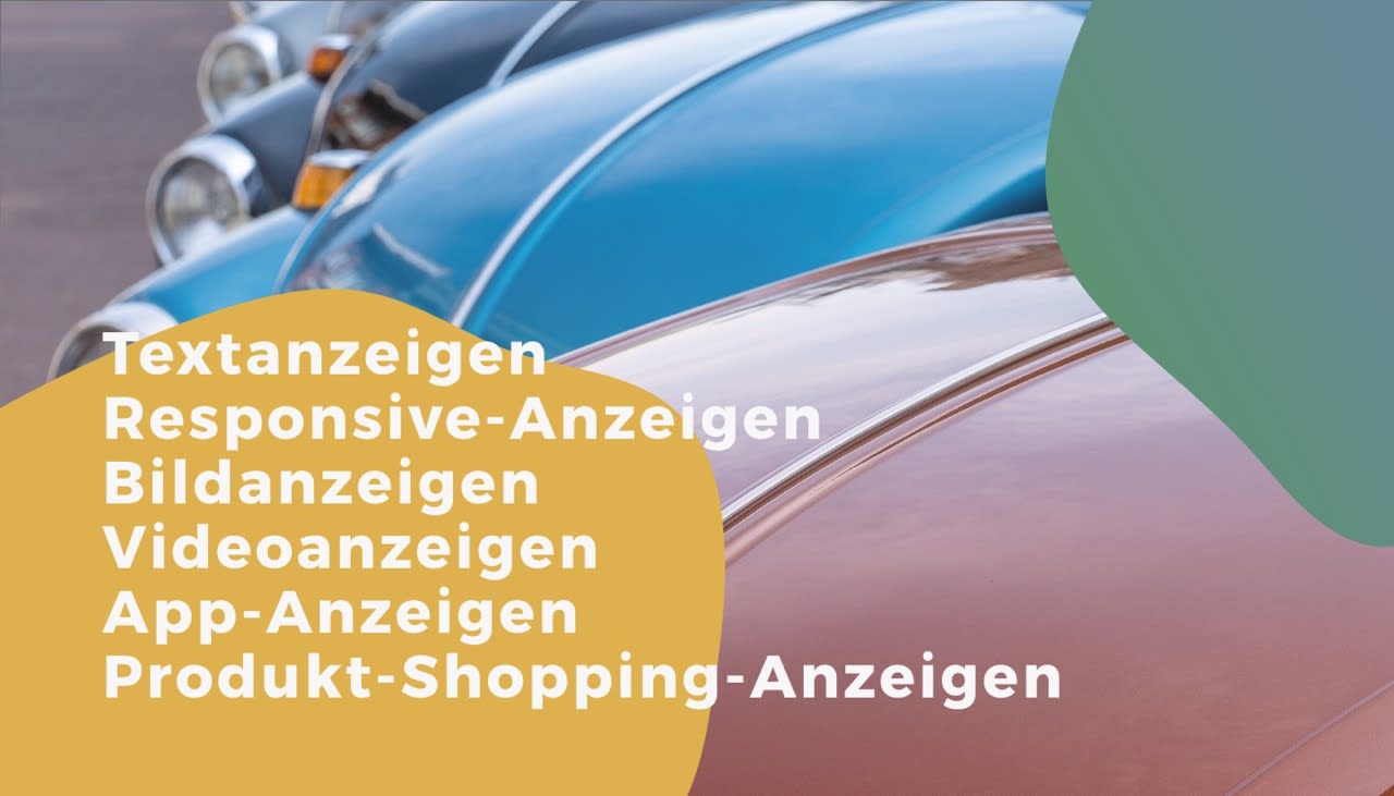 Bei Google Ads hast Du die Wahl zwischen vier verschiedenen Anzeigenformaten. Jedes Format hat einen anderen Schwerpunkt. Wähle zwischen: