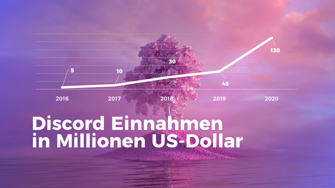 2020 hat Discord einen Umsatz von 130 Millionen Dollar gemacht. Im Vergleich zu 2019 (da waren es 45 Millionen Dollar) haben sich die Einnahmen also fast verdreifacht.