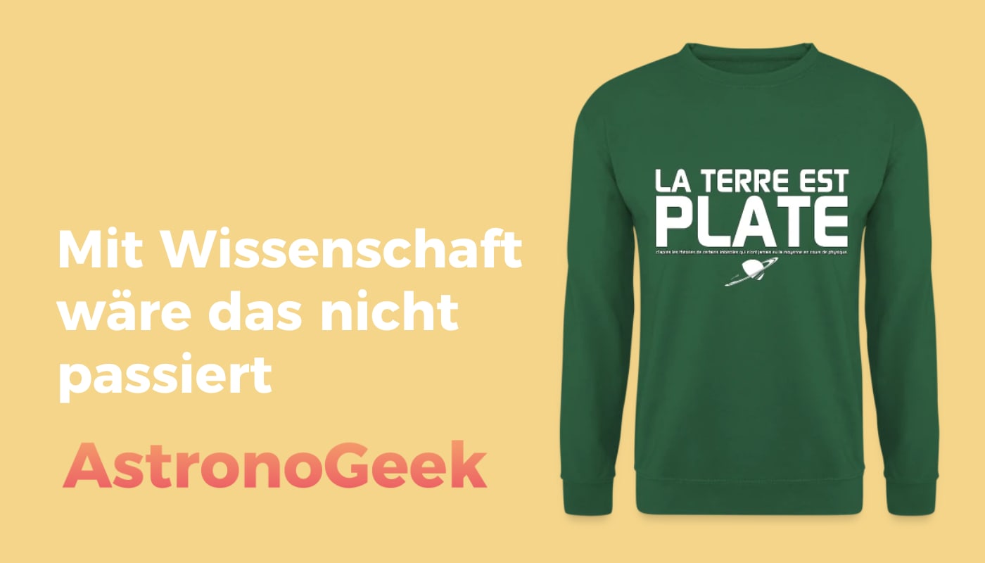Zugegeben, AstornoGeek bietet nicht nur schwarzes Merchandise an. Ein erdverbundenes Grün ziert zum Beispiel diesen Pullover. Die Botschaft – eine Falle für Menschen mit Hang zur Wissenschaftsverweigerung: „Die Erde ist flach“ – zumindest für einige Menschen. Welche? Das herauszufinden, überlassen wir Deinen Französischkenntnissen oder der guten alten Übersetzungssoftware.