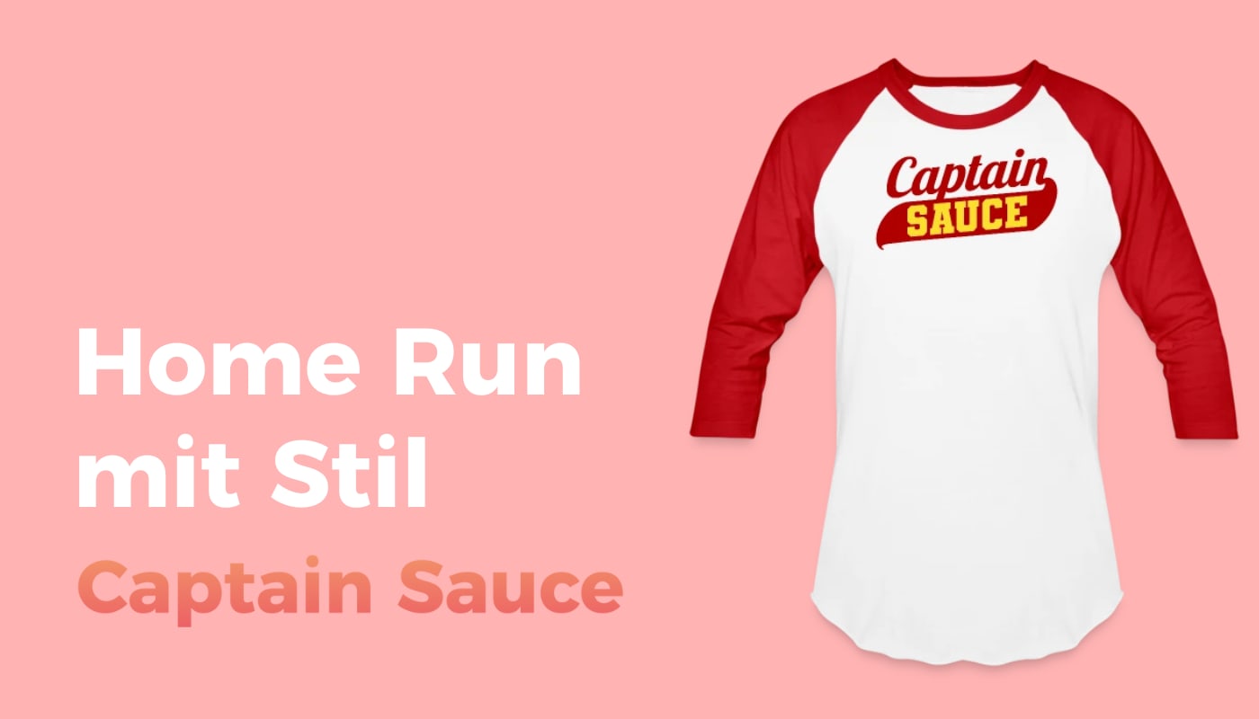 Wie wäre es zum Beispiel mit einem Baseball-Shirt? Mit dem CaptainSauce-Schriftzug verziert, ein echter Home Run. Das simple und doch verspielte Design ist wie geschaffen für den zweifarbigen old-school-Look des Shirts. In tomatenrot ein absoluter Hingucker und eine Verbeugung vor dem Gamer, dem kein Endgegner zu mächtig ist.
