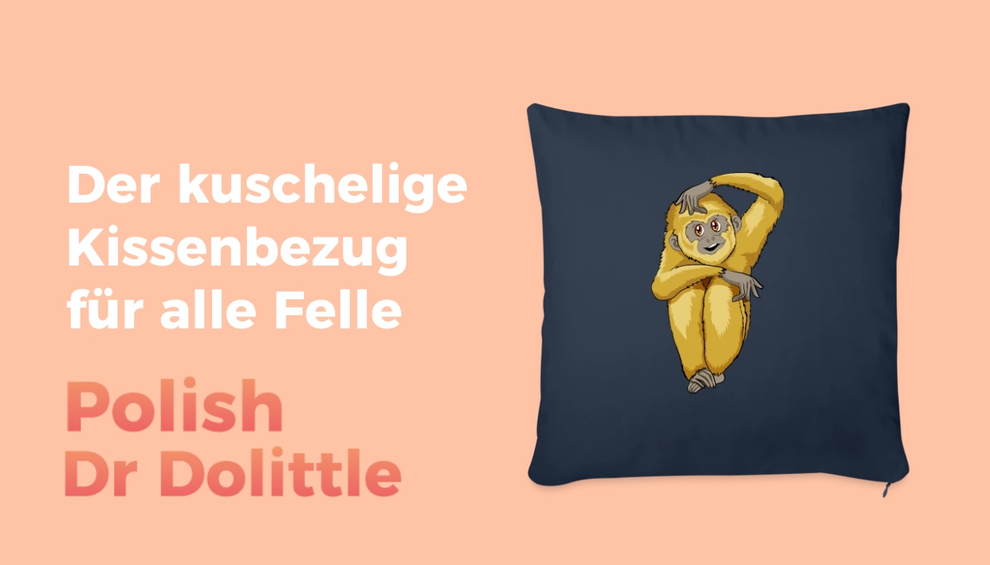 Aber Dr Dolittle präsentiert auch einzelne Tiere. Dieser kleine Gibbon aus dem Gruppenbild bekommt seinen eigenen Auftritt. Der süße Geselle macht den Kissenbezug garantiert noch viel flauschiger.