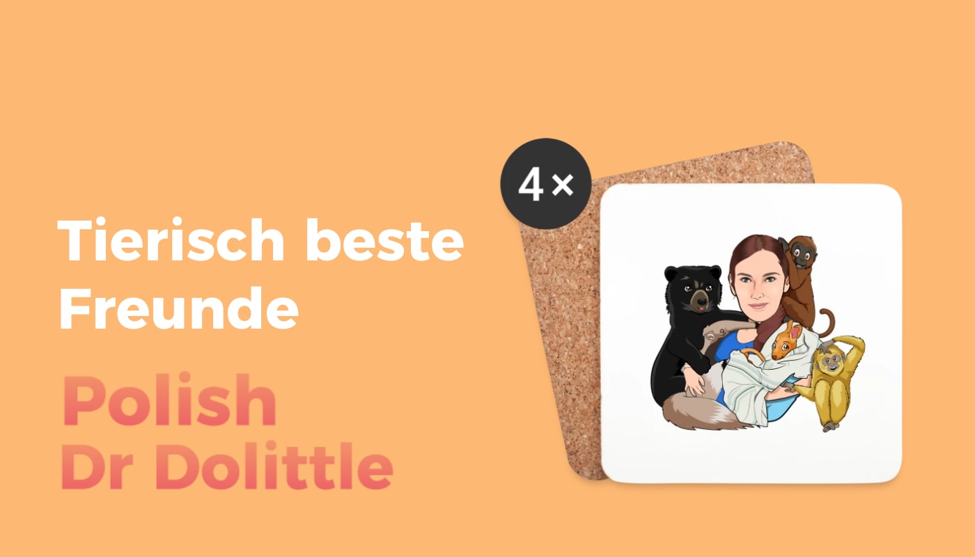 Auch die Tierflüsterin selbst ist im Merchandise Shop vertreten – natürlich im Comicstyle. Auf diesen praktischen Untersetzern zum Beispiel. Zusammen mit ihren flauschigen Freunden sorgt sie garantiert für verzückte Seufzer.