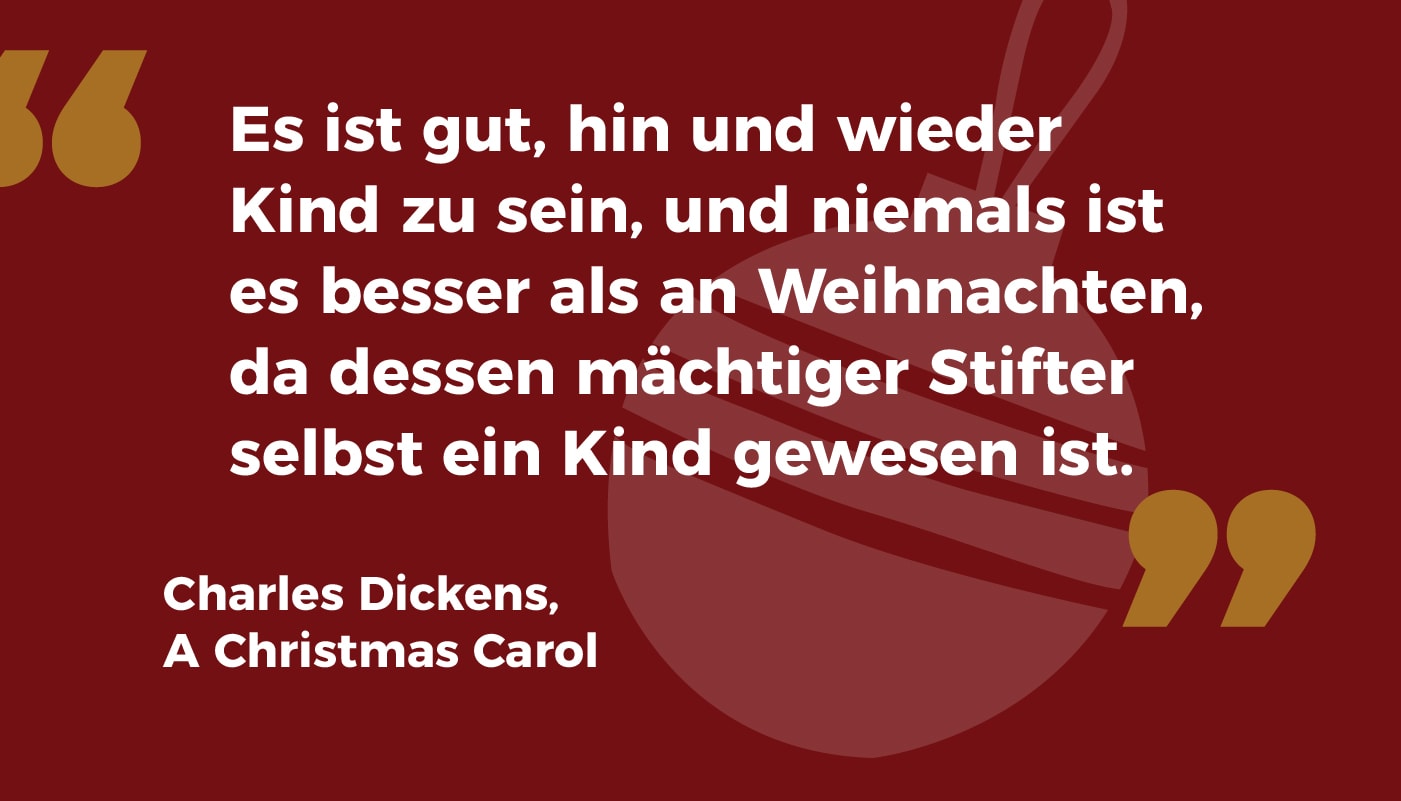 âManchmal ist es gut, ein Kind zu sein, und nie besser als an Weihnachten, als der mĂ€chtige BegrĂŒnder selbst ein Kind war.â â Charles Dickens in âA Christmas Carolâ (auf Deutsch âEin Weihnachtsliedâ), einer seiner bekanntesten ErzĂ€hlungen. Der britische Schriftsteller zeigt, welchen Zauber das Weihnachtsfest vor allem fĂŒr die Kleinsten unter uns hat. Insbesondere fĂŒr Kinder, ihre Eltern und Familien ist das Weihnachtsfest von ganz besonderer Bedeutung.