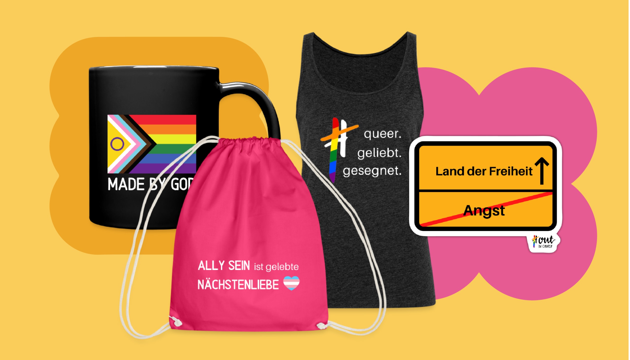 „Für einen Spreadshop haben wir uns entschieden um den Mitgliedern der Initiative und allen anderen Unterstützer*innen Merch anbieten zu können. Die Shirts schaffen Sichtbarkeit – für die Initiative und unser Anliegen; Sichtbarkeit für queere Menschen, die auch Teil der Kirche sind und für Veränderung kämpfen. Wir sind mit dem Shop kurz vor dem Katholikentag im Mai und pünktlich zur CSD-Saison gestartet, weil wir bei diesen Veranstaltungen ein klares Zeichen setzen wollten.“ – Initiative #OutInChurch
