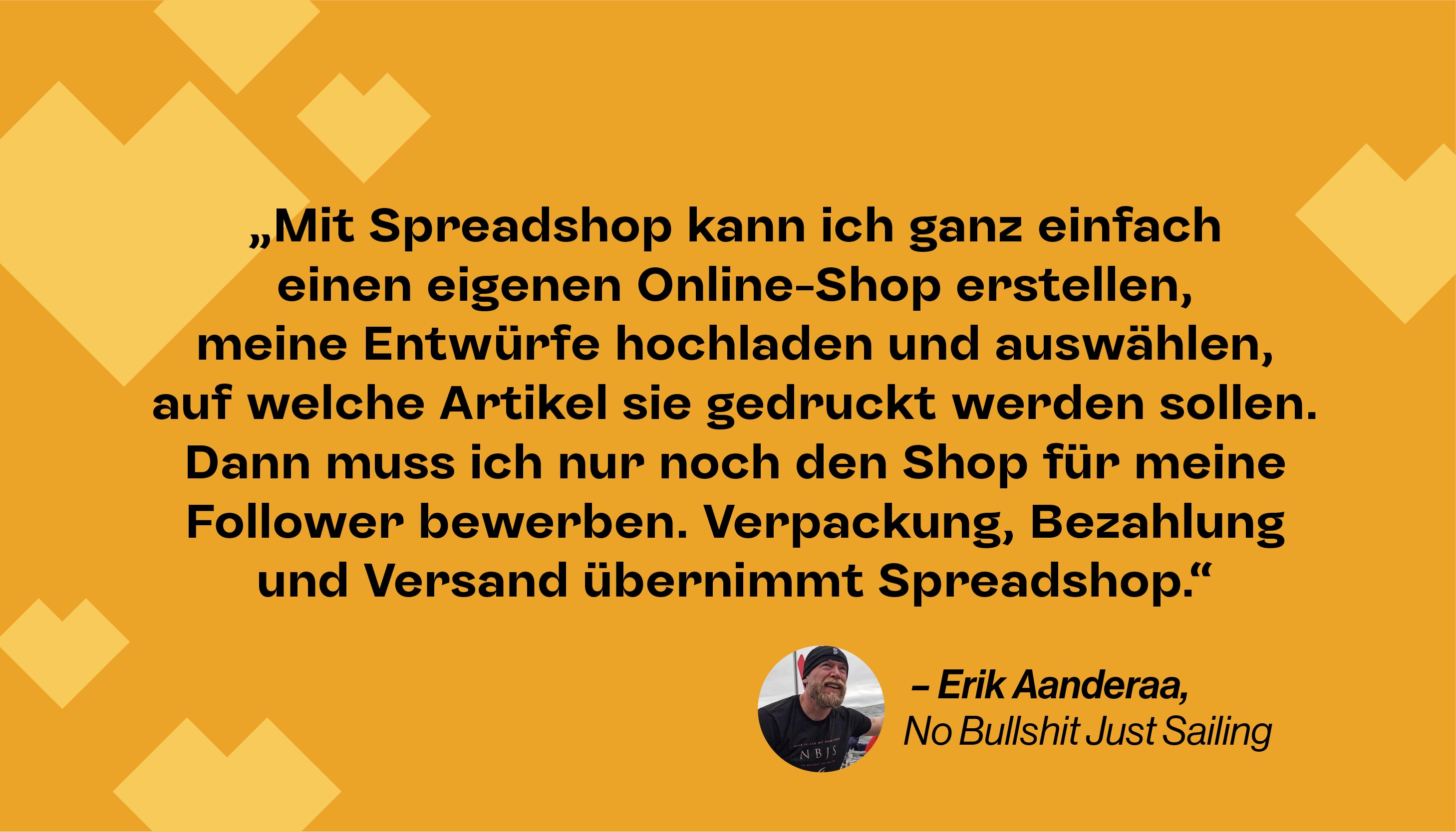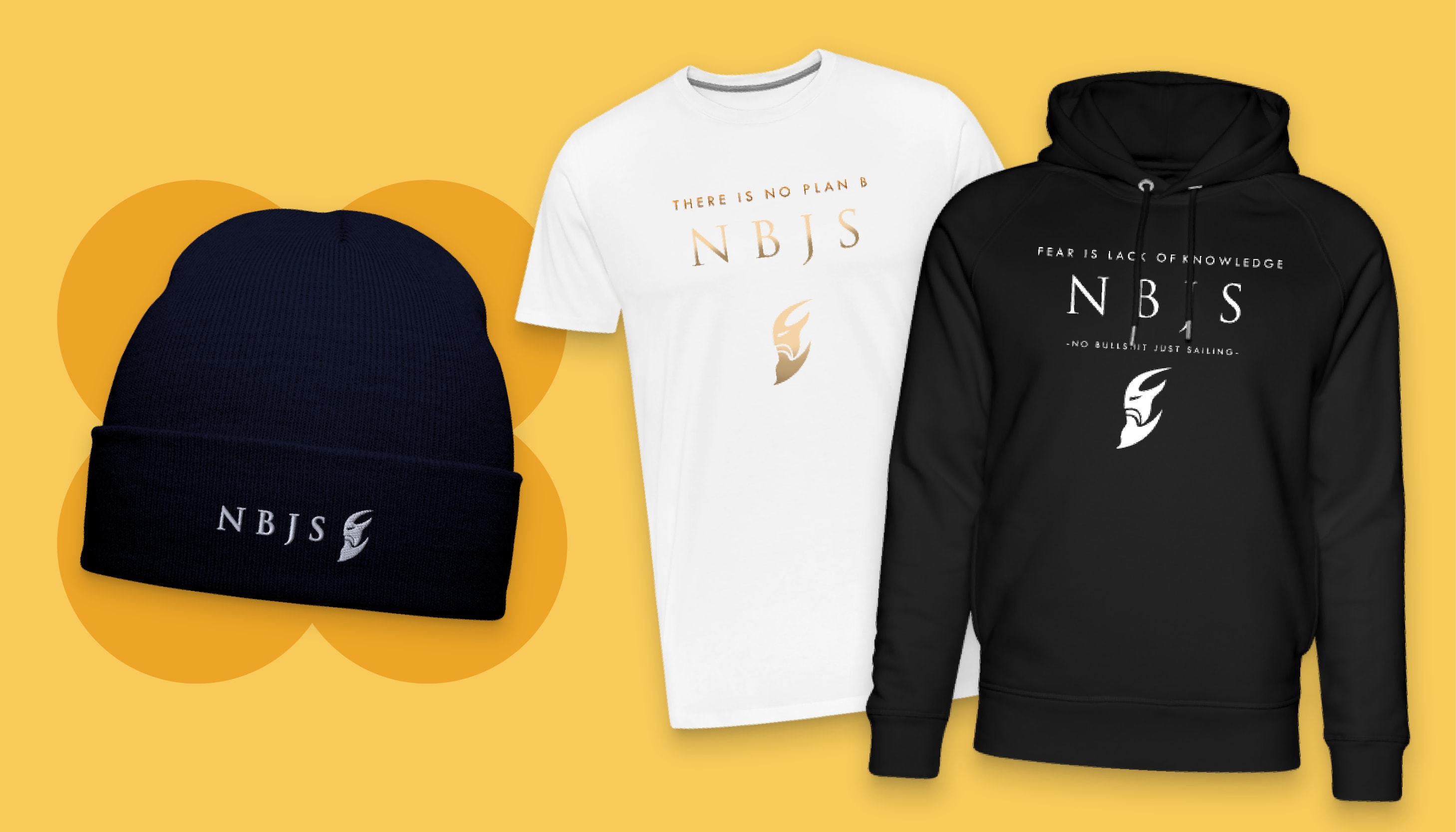 Ich habe meinen Spreadshop im Jahr 2016 gestartet. Mein Thema ist mein Markenlogo aus meinem YouTube-Kanal, zusammen mit den Buchstaben NBJS “No Bullshit Just Sailing”, was sich wiederum auf meine Leidenschaft für abenteuerliches Segeln bezieht, auf den Spuren der alten norwegischen Wikinger.