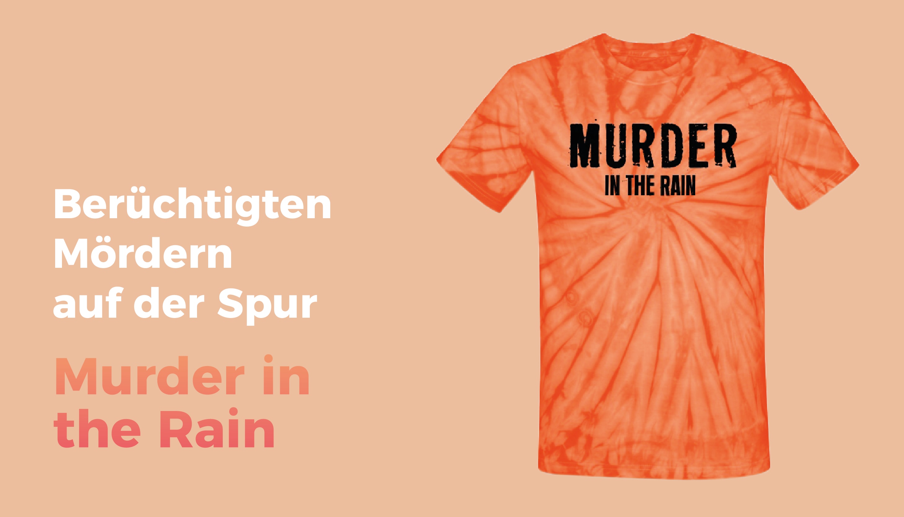 Mit den Shirts und Hoodies im Murder in the Rain Spreadshop bieten Emily und Alisha ihren Fans passendes Merch an. Das meiste davon ist mit ihrem Schriftzug „Murder in the Rain“ bedruckt, der schnell erkennen lässt: Dieser Podcast ist nichts für schwache Nerven. Statt auf knallige Farbe setzen die Podcaster auf dezente, dunkle Töne, die die düstere Stimmung unterstreichen.