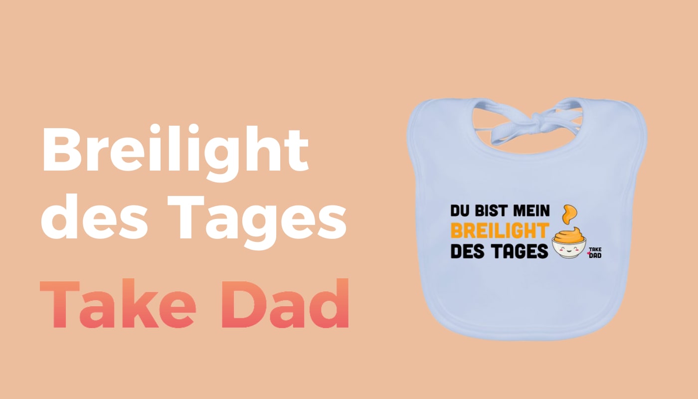 Dass die jungen Väter sich selbst nicht zu ernst nehmen, zeigt auch der Take Dad Spreadshop. Das Breilight der Woche gibts nämlich im Podcast und auf ihrem Merch. Das bedruckte Lätzchen sorgt so auch sicher beim nächsten Füttern für Schmunzler.