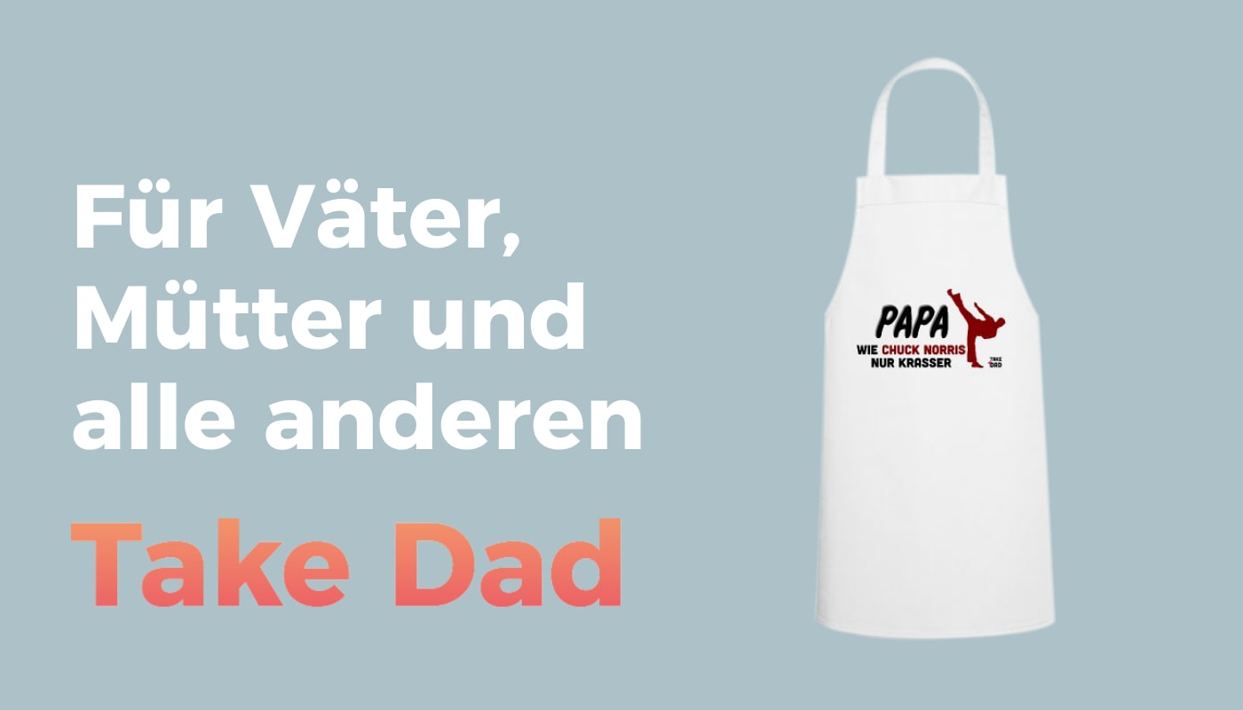 Auch alle Powerpapas finden Play On Demand Merchandise im Spreadshop der beiden. Die Schürze mit dem Aufdruck „Papa – wie Chuck Norris nur krasser“ macht klar: Papasein ist manchmal eine echte Herausforderung, aber mit Humor und Leichtigkeit kann man(n) alles schaffen.