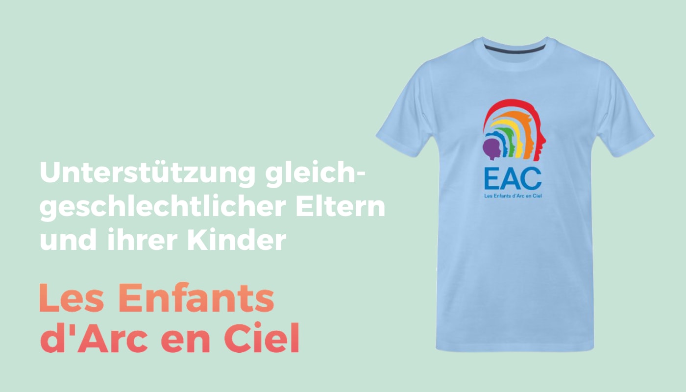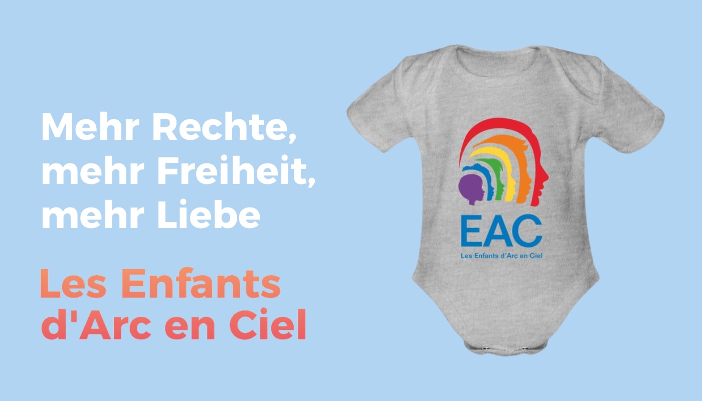 Im Les Enfants d’Arc en Ciel Spreadshop gibts passenden Pride Merchandise mit dem Logo des Vereins, das sich in den 6 Farben der Regenbogenflagge zeigt. Darunter der Name „EAC – Les Enfants d’Arc en Ciel“, was übrigens so viel bedeutet wie „Die Kinder des Regenbogens“.