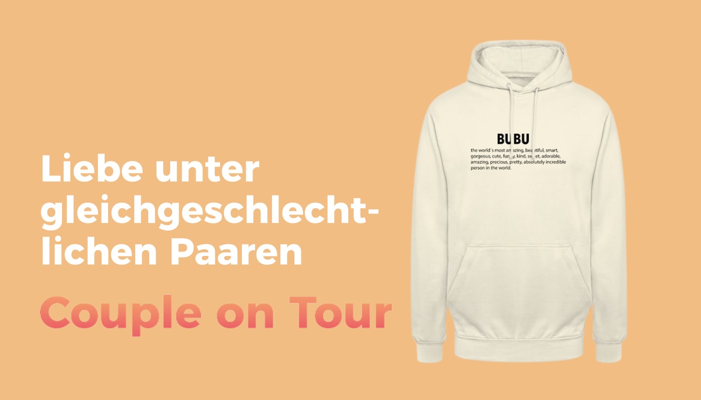 Im Couple on Tour Spreadshop dreht sich alles ums Glücklichsein. Ihre Bubus – so nennen die zwei ihre Community – finden dort passenden Merch, zum Beispiel einen Hoodie, der den Kosenamen „Bubu“ erklärt – auf Deutsch: die erstaunlichste, schönste, klügste, hinreißendste, niedlichste, lustigste, netteste, süßeste, bezauberndste, erstaunlichste, wertvollste, hübscheste, unglaublichste Person der Welt. Warum den nicht einfach mal an eine liebe Person verschenken?