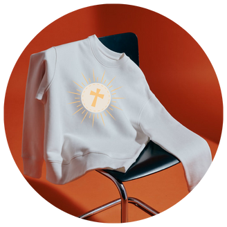 Add your logo and faith-based designs to t-shirts, hoodies, stickers and more.